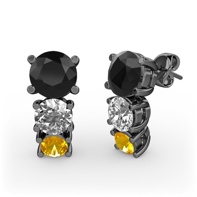 Siyah zirkon, beyaz zirkon ve sitrin 925 ayar siyah rodyum kaplama gümüş küpe