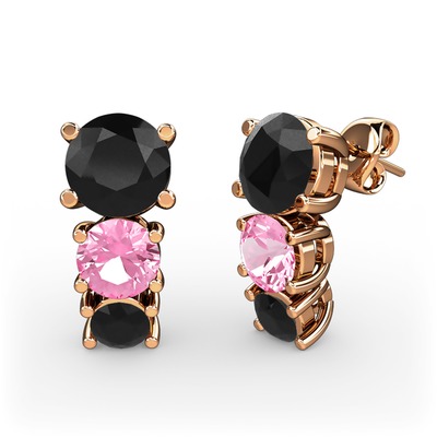 Siyah zirkon ve pembe kuvars 14 ayar rose altın küpe