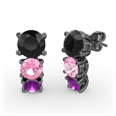 Siyah zirkon, pembe kuvars ve ametist 925 ayar siyah rodyum kaplama gümüş küpe