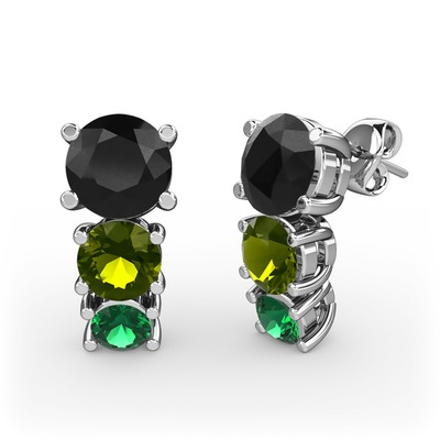 Siyah zirkon, peridot ve yeşil kuvars 18 ayar beyaz altın küpe