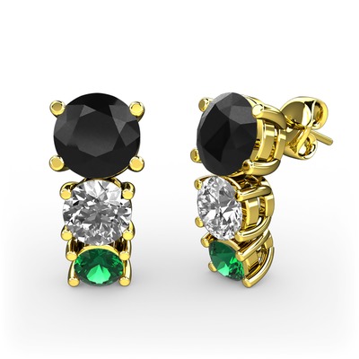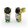 Siyah zirkon, pırlanta ve yeşil kuvars 14 ayar altın küpe (0.48 karat)