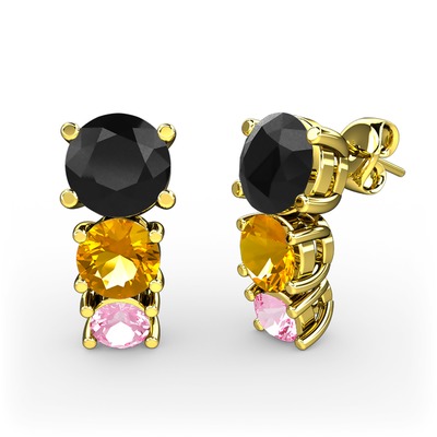 Siyah zirkon, sitrin ve pembe kuvars 8 ayar altın küpe