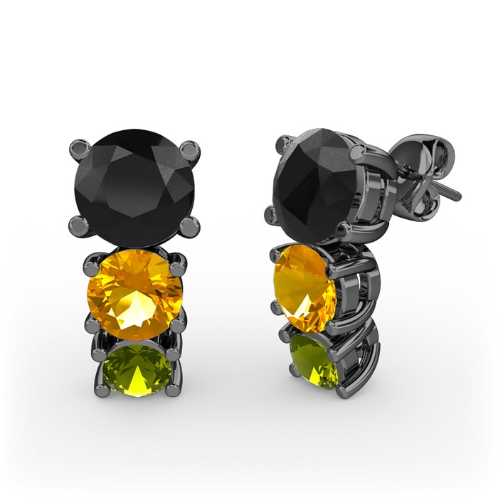 Siyah zirkon, sitrin ve peridot 925 ayar siyah rodyum kaplama gümüş küpe