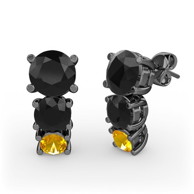 Siyah zirkon ve sitrin 925 ayar siyah rodyum kaplama gümüş küpe
