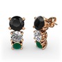 Siyah zirkon, swarovski ve kök zümrüt 18 ayar rose altın küpe