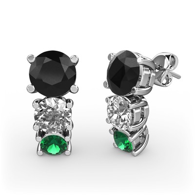 Siyah zirkon, swarovski ve yeşil kuvars 925 ayar gümüş küpe