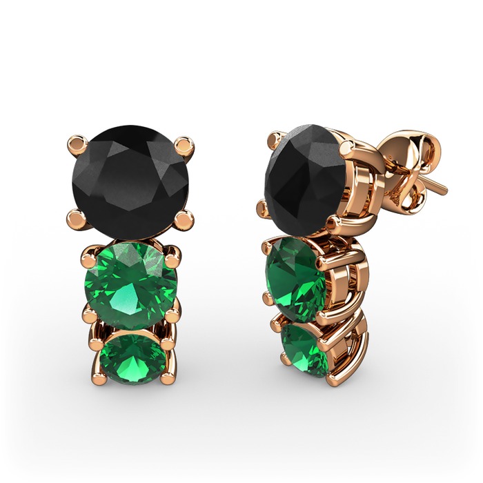 Siyah zirkon ve yeşil kuvars 18 ayar rose altın küpe