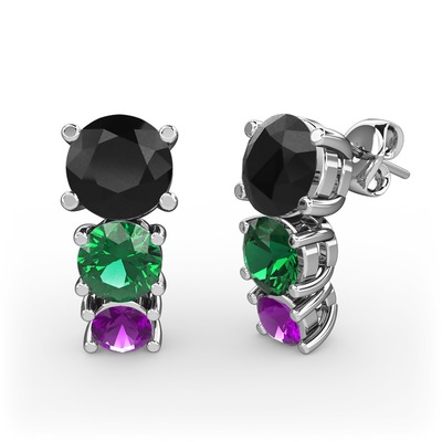 Siyah zirkon, yeşil kuvars ve ametist 925 ayar gümüş küpe