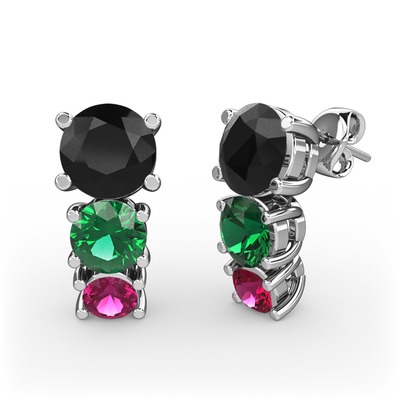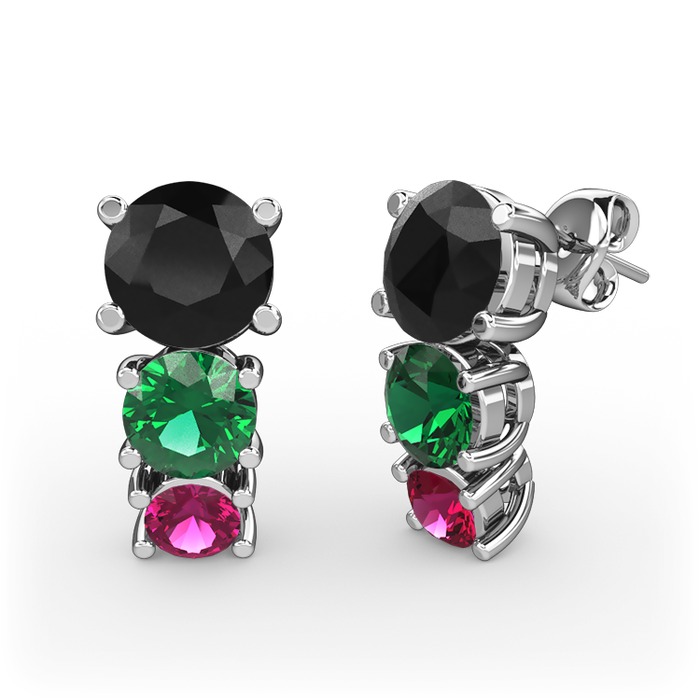 Siyah zirkon, yeşil kuvars ve rodolit garnet 925 ayar gümüş küpe