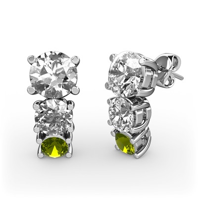 Swarovski, beyaz zirkon ve peridot 925 ayar gümüş küpe