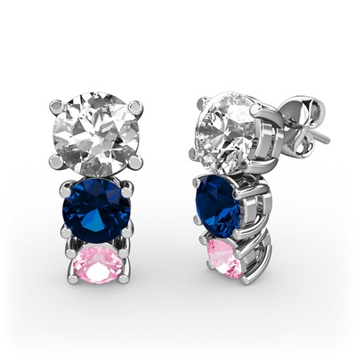 Swarovski, lab safir ve pembe kuvars 14 ayar beyaz altın küpe
