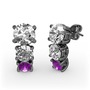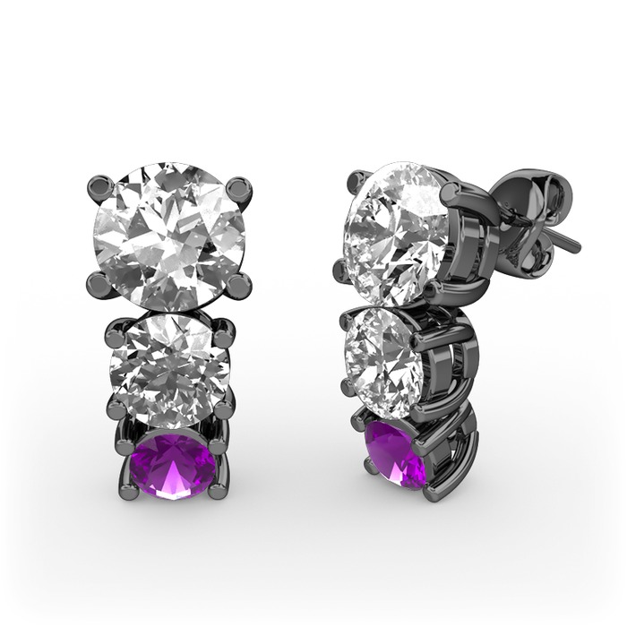 Swarovski, pırlanta ve ametist 925 ayar siyah rodyum kaplama gümüş küpe (0.48 karat)