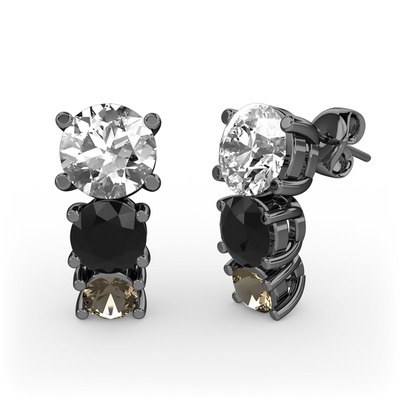 Swarovski, siyah zirkon ve dumanlı kuvars 925 ayar siyah rodyum kaplama gümüş küpe