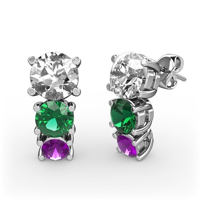 Swarovski, yeşil kuvars ve ametist 925 ayar gümüş küpe