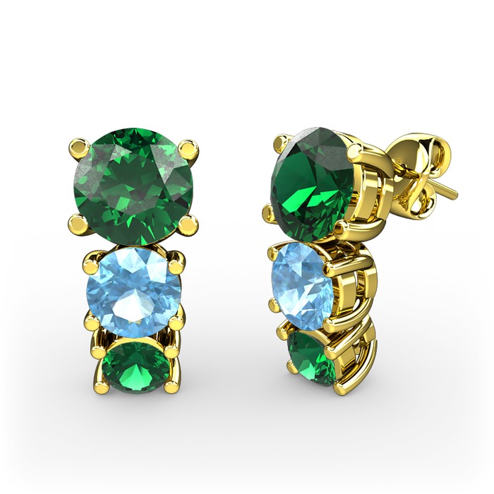Yeşil kuvars ve akuamarin 14 ayar altın küpe
