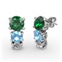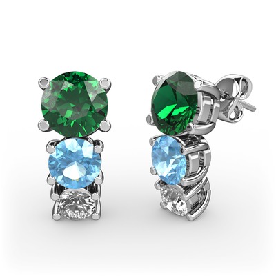 Yeşil kuvars, akuamarin ve beyaz zirkon 18 ayar beyaz altın küpe