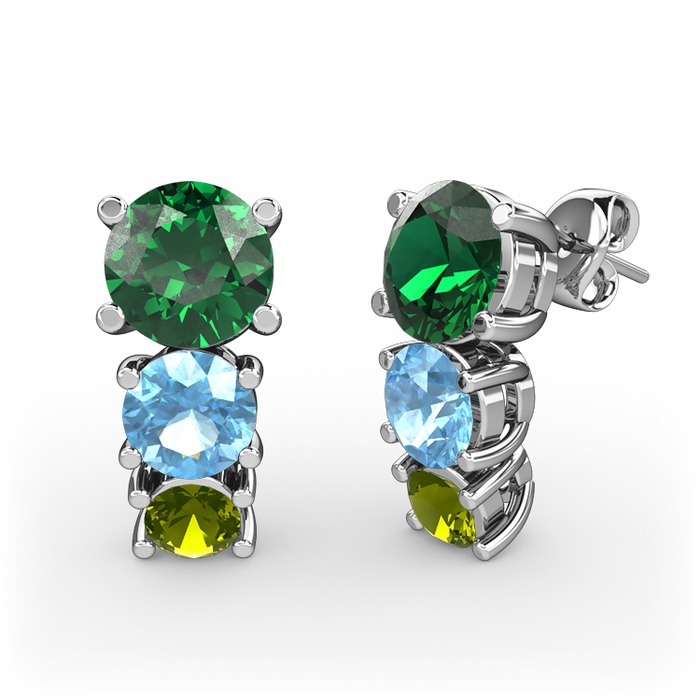 Yeşil kuvars, akuamarin ve peridot 14 ayar beyaz altın küpe