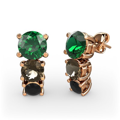 Yeşil kuvars, dumanlı kuvars ve siyah zirkon 8 ayar rose altın küpe