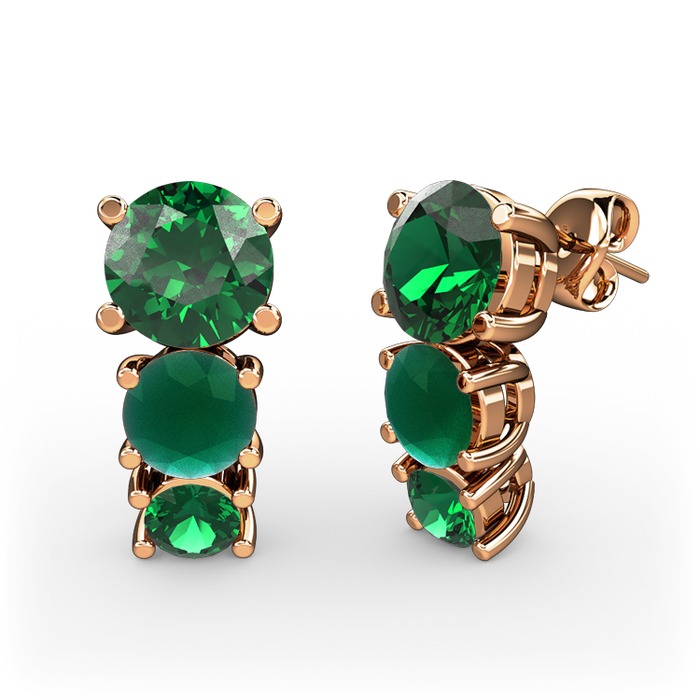Yeşil kuvars ve kök zümrüt 18 ayar rose altın küpe