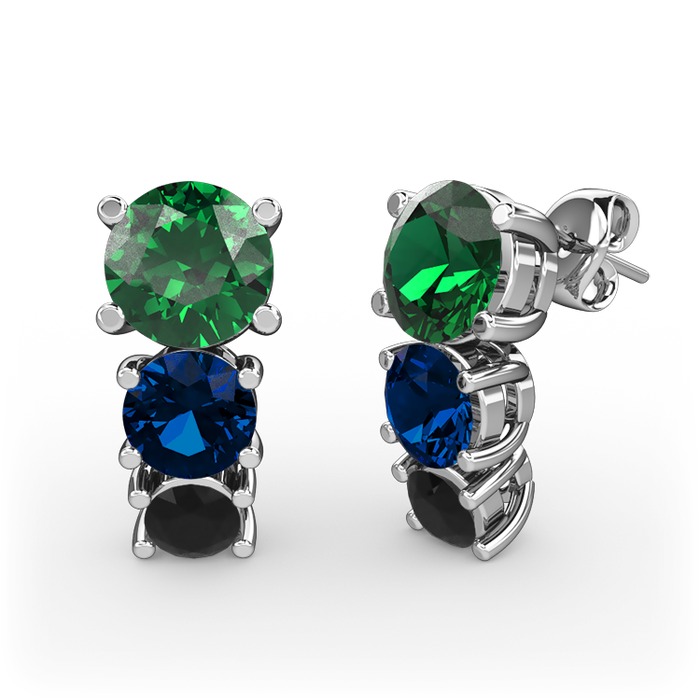 Yeşil kuvars, lab safir ve siyah zirkon 8 ayar beyaz altın küpe