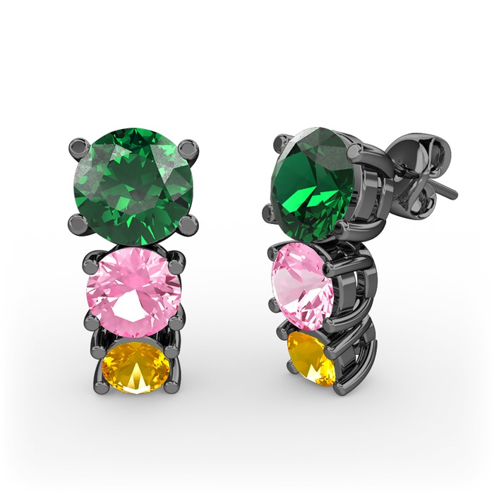 Yeşil kuvars, pembe kuvars ve sitrin 925 ayar siyah rodyum kaplama gümüş küpe