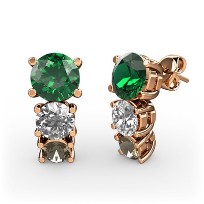 Yeşil kuvars, pırlanta ve dumanlı kuvars 18 ayar rose altın küpe (0.48 karat)