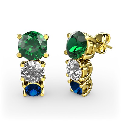Yeşil kuvars, pırlanta ve lab safir 14 ayar altın küpe (0.48 karat)
