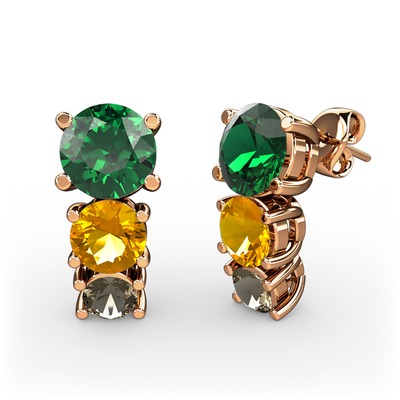 Yeşil kuvars, sitrin ve dumanlı kuvars 8 ayar rose altın küpe