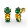 Yeşil kuvars, sitrin ve kök zümrüt 8 ayar altın küpe