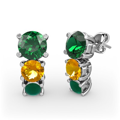 Yeşil kuvars, sitrin ve kök zümrüt 8 ayar beyaz altın küpe