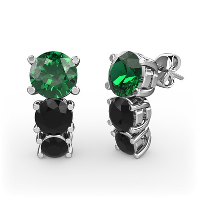 Yeşil kuvars ve siyah zirkon 14 ayar beyaz altın küpe