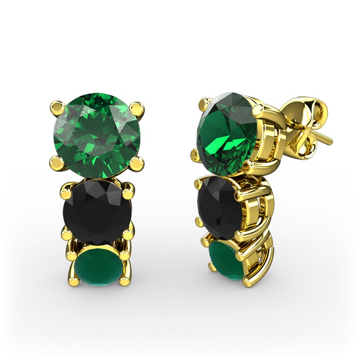 Yeşil kuvars, siyah zirkon ve kök zümrüt 925 ayar altın kaplama gümüş küpe