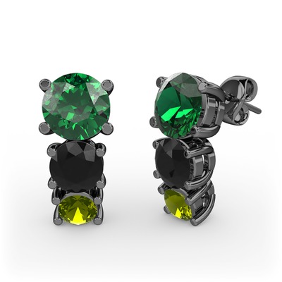 Yeşil kuvars, siyah zirkon ve peridot 925 ayar siyah rodyum kaplama gümüş küpe