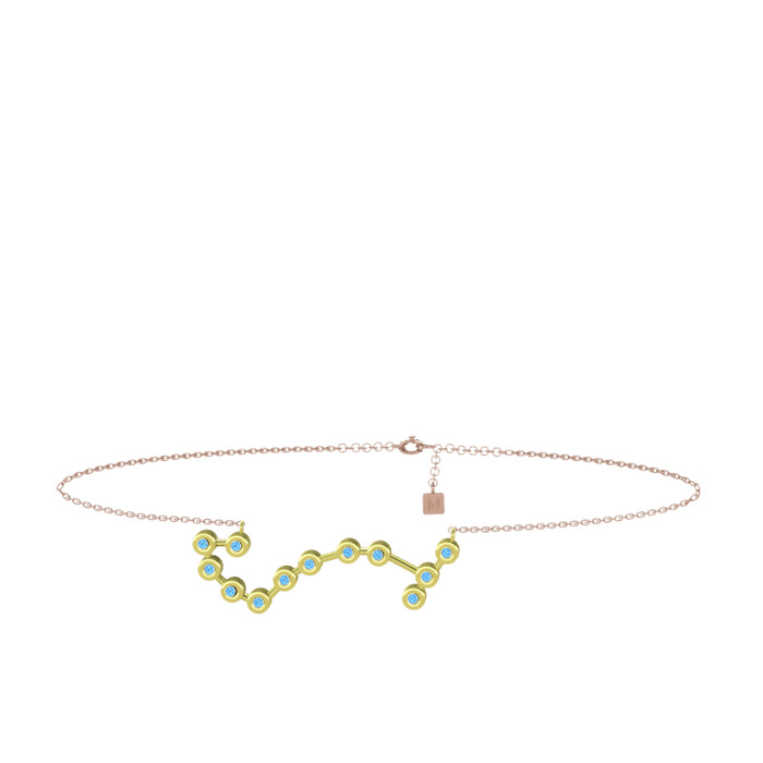 Akuamarin 8 ayar altın bilezik (20 cm rose altın rolo zincir)
