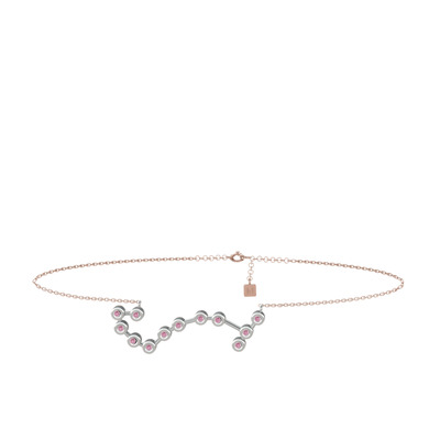 Pembe kuvars 18 ayar beyaz altın bilezik (20 cm rose altın rolo zincir)