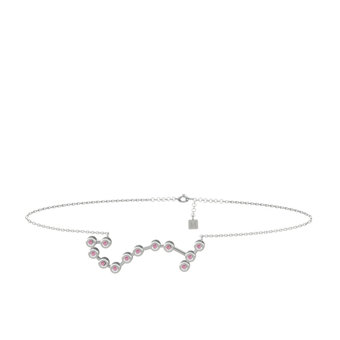 Pembe kuvars 8 ayar beyaz altın bilezik (20 cm gümüş rolo zincir)