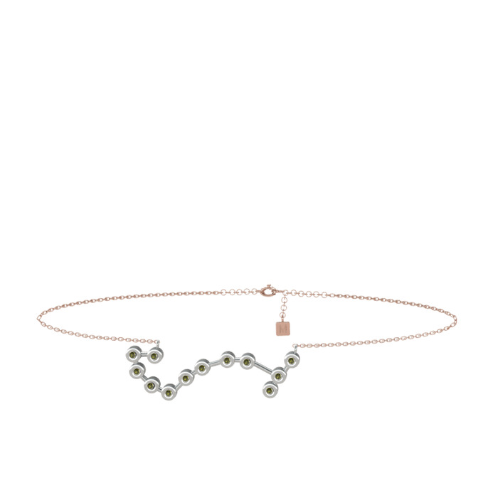 Peridot 18 ayar beyaz altın bilezik (20 cm gümüş rolo zincir)