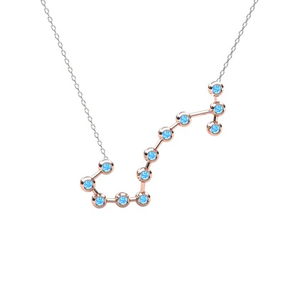 Akuamarin 8 ayar rose altın kolye (40 cm gümüş rolo zincir)