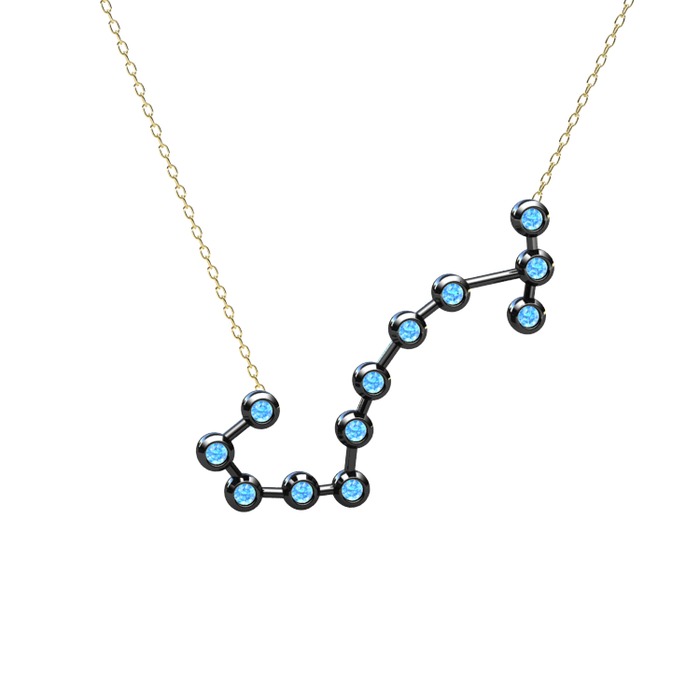 Akuamarin 925 ayar siyah rodyum kaplama gümüş kolye (40 cm gümüş rolo zincir)