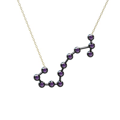 Ametist 925 ayar siyah rodyum kaplama gümüş kolye (40 cm altın rolo zincir)