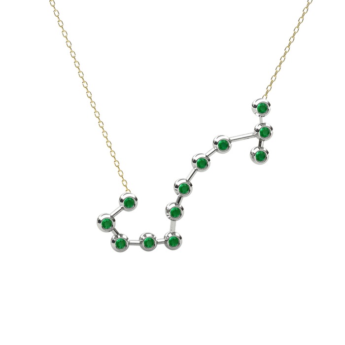 Kök zümrüt 14 ayar beyaz altın kolye (40 cm gümüş rolo zincir)