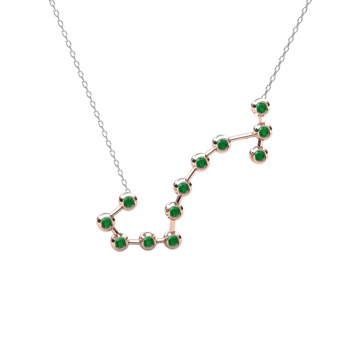 Kök zümrüt 8 ayar rose altın kolye (40 cm beyaz altın rolo zincir)