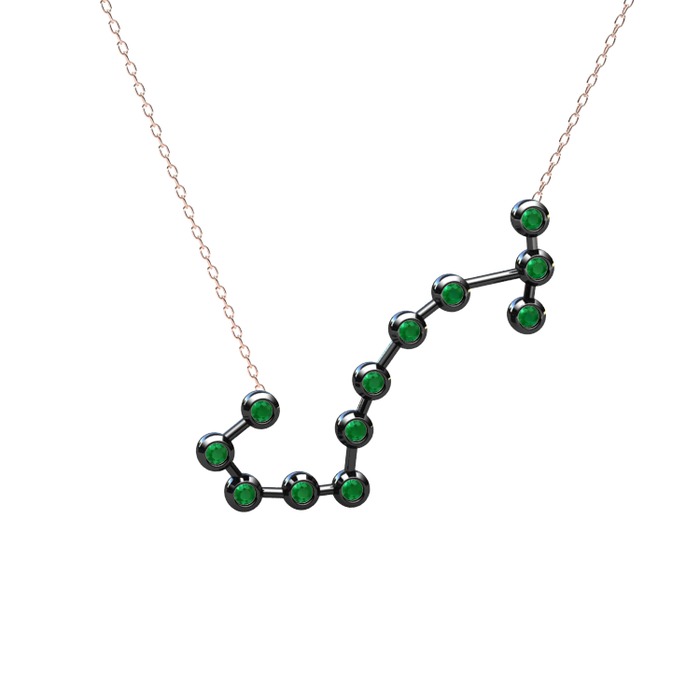 Kök zümrüt 925 ayar siyah rodyum kaplama gümüş kolye (40 cm rose altın rolo zincir)