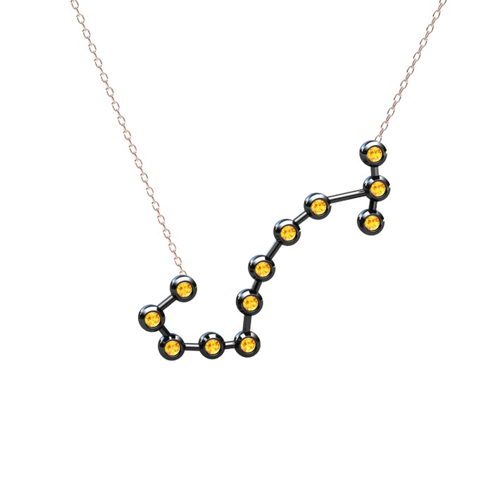 Sitrin 925 ayar siyah rodyum kaplama gümüş kolye (40 cm rose altın rolo zincir)