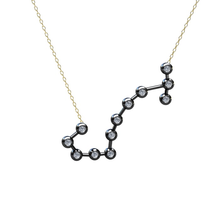 Swarovski 925 ayar siyah rodyum kaplama gümüş kolye (40 cm altın rolo zincir)