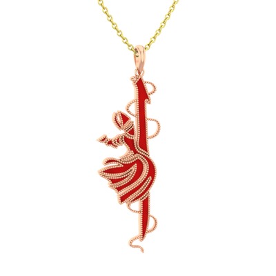 14 ayar rose altın kolye (Kırmızı mineli, 40 cm gümüş rolo zincir)