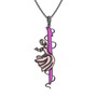 925 ayar siyah rodyum kaplama gümüş kolye (Neon pembe mineli, 40 cm gümüş rolo zincir)