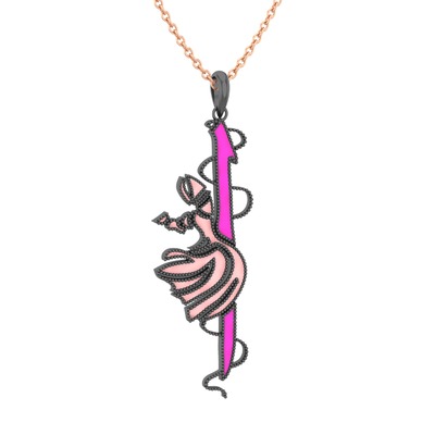 925 ayar siyah rodyum kaplama gümüş kolye (Neon pembe mineli, 40 cm rose altın rolo zincir)
