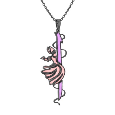 925 ayar siyah rodyum kaplama gümüş kolye (Pembe mineli, 40 cm gümüş rolo zincir)