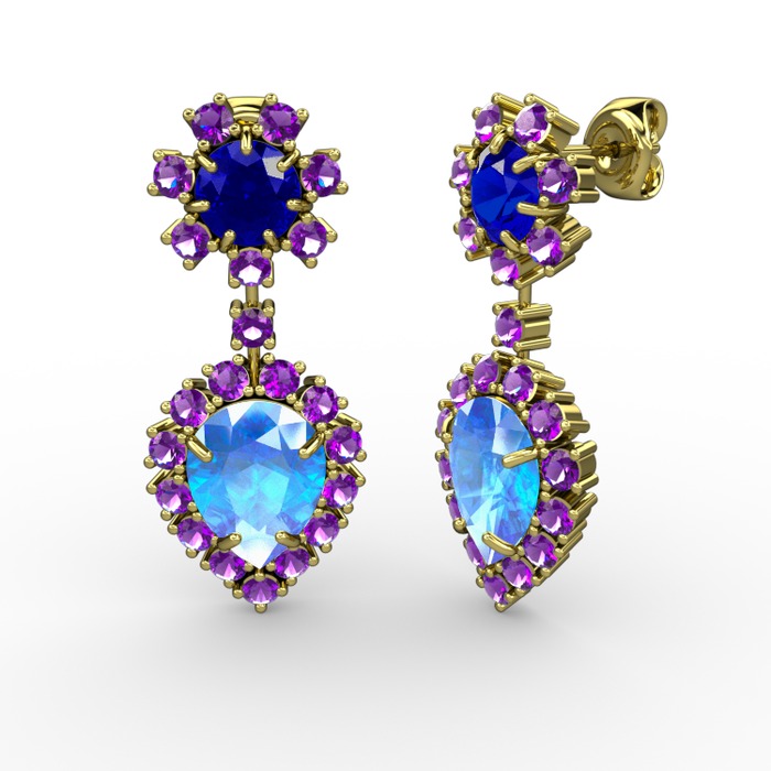 Akuamarin, ametist ve lab safir 8 ayar altın küpe